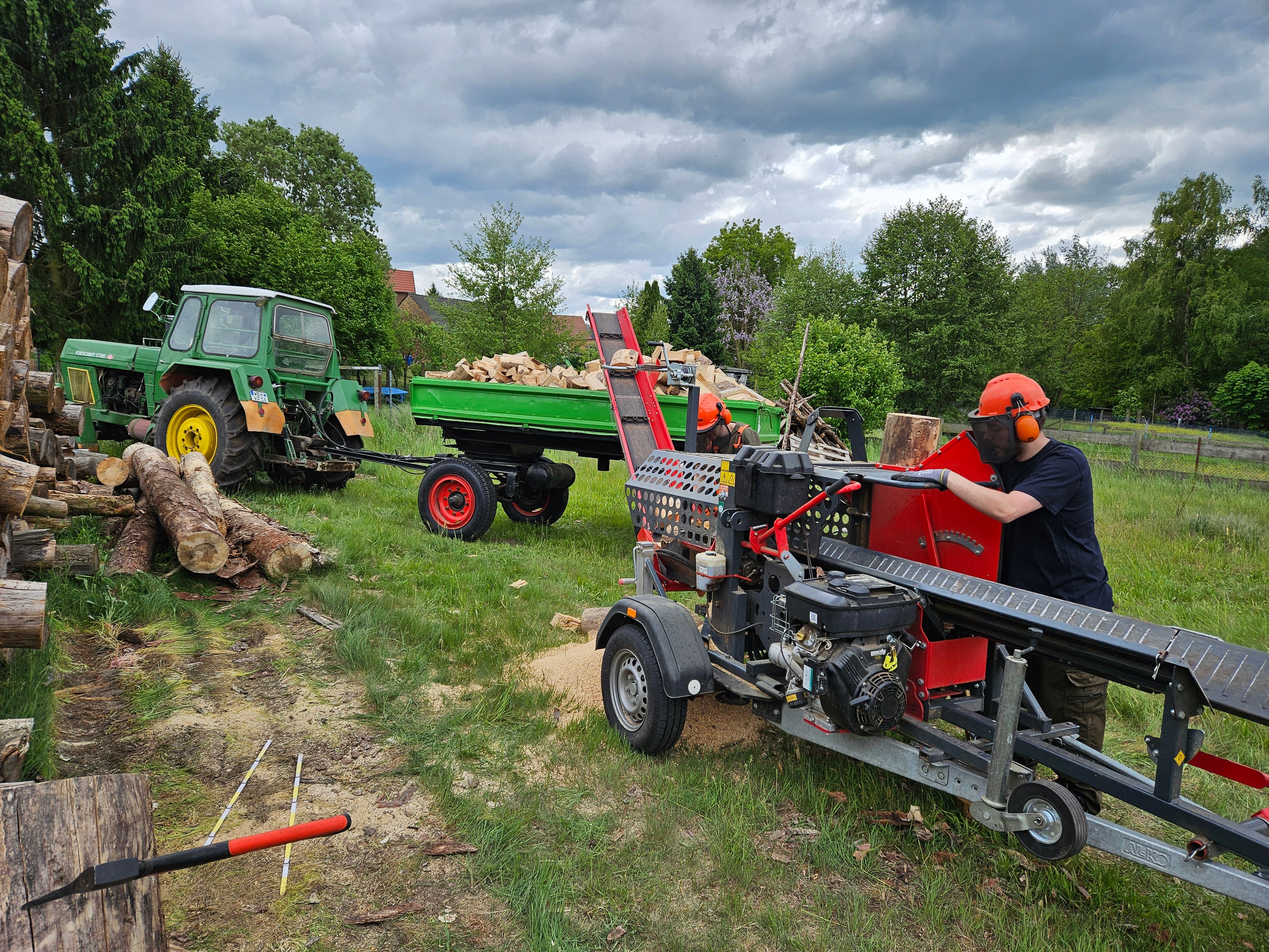 Nicht immer ist es möglich, das Holz zur Verarbeitung zu bringen – deshalb kommen wir einfach zu Ihnen. Mit unserem mobilen Sägespaltautomat verarbeiten wir Ihr Brennholz direkt vor Ort, zuverlässig und sauber.